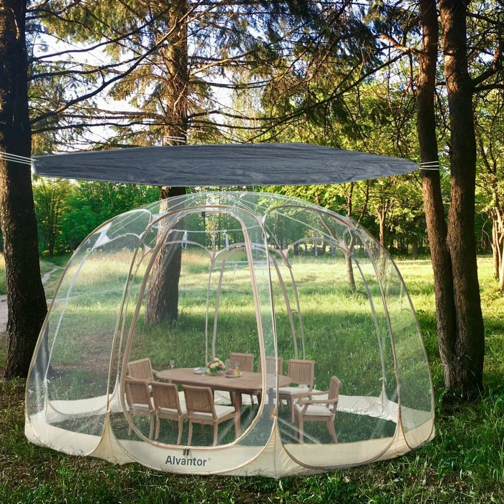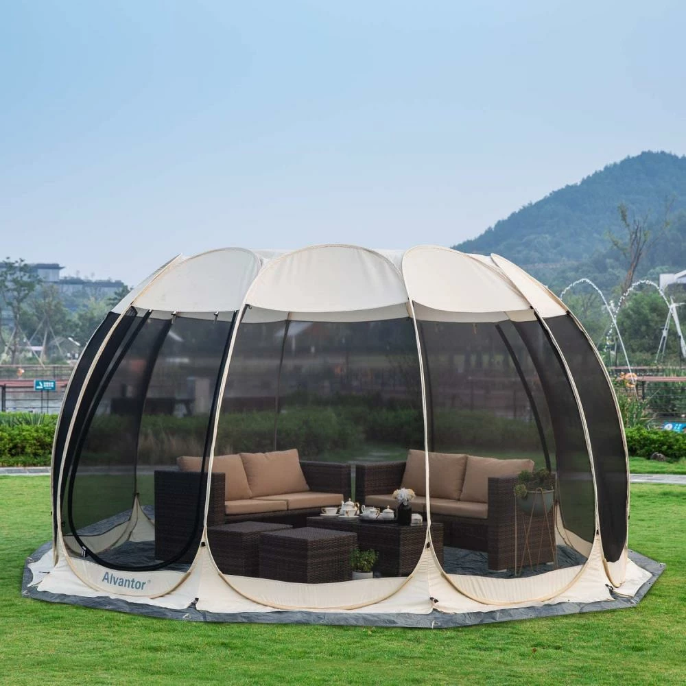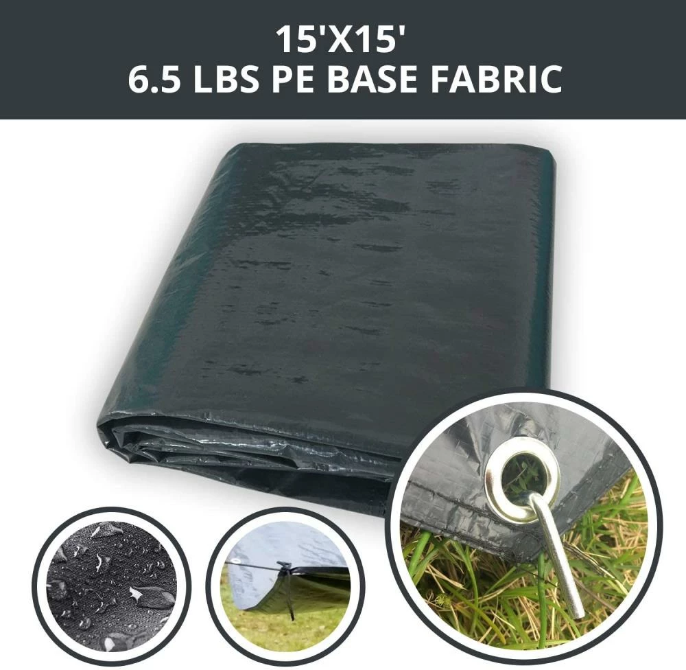 Alvantor PE floor lightweight mat measures 15x 15′, only 6.5 lbs. PE used as the floor or cover of, Alvantor breezy hexagonal 10 panel 15×15′ screen house and winter gazebo.it Can protect you from dirty ground and insects.the Trap made of weave polyethylene thread with 10 mil thickness.dual Lamination for water resistance, washable. Aluminum high strength rust-resistant grommets reinforce each corners and middle,allow this poly tarp to be tied down and secured simply.taking it as a floor mat when you go hiking, camping or on the beach, providing shelter from the elements,like wind, rain or sunlight for campers. You can hang it on to protect your flowers, plants, flower stands and animals from burning sun or heavy rain. It also can be used as a cover to collect the fallen leaves, keep your pool, playground and backyard clean. Moreover it can be used as protection for boats, cars or motor vehicles, or as a temporary pickup truck bed cover.