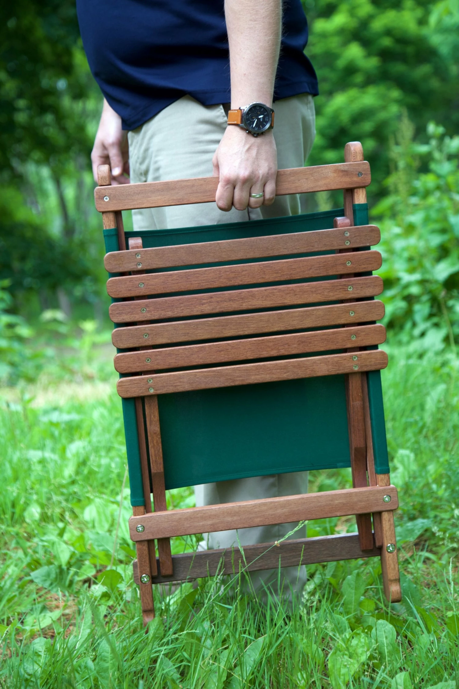- Crafted from renewable hardwood Keruing wood it has been dipped in oil for an extra protective finish and covered with an attractive heavy weight dark green polyester canvas