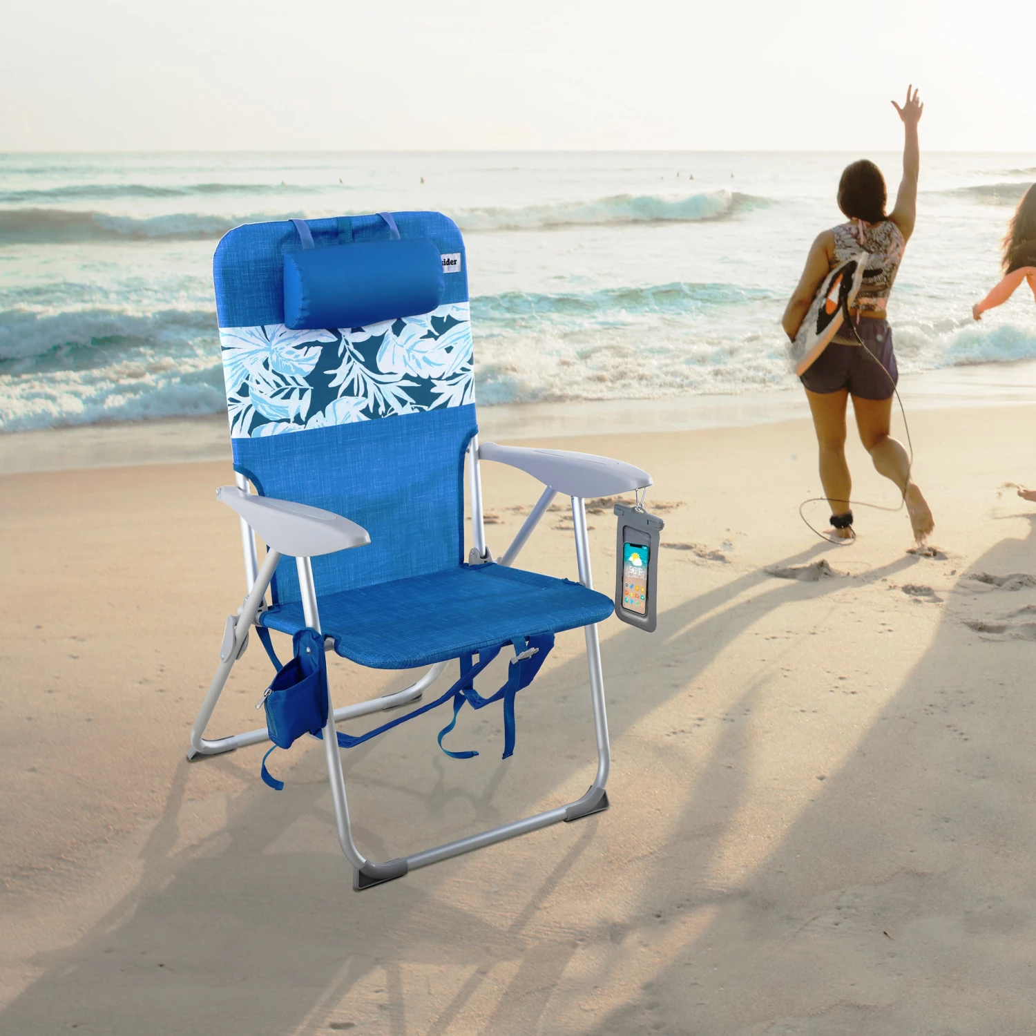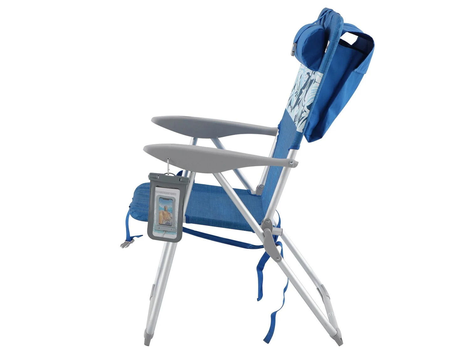 Higher-sitting for easy sitting and standing, this chair makes getting in and out of the chair a breeze. The frame is aluminum with durable plastic arms, included deluxe cupholder, waterproof phone bag, and backpack straps. A 4-position reclining function makes it easy to find the perfect lounging position.